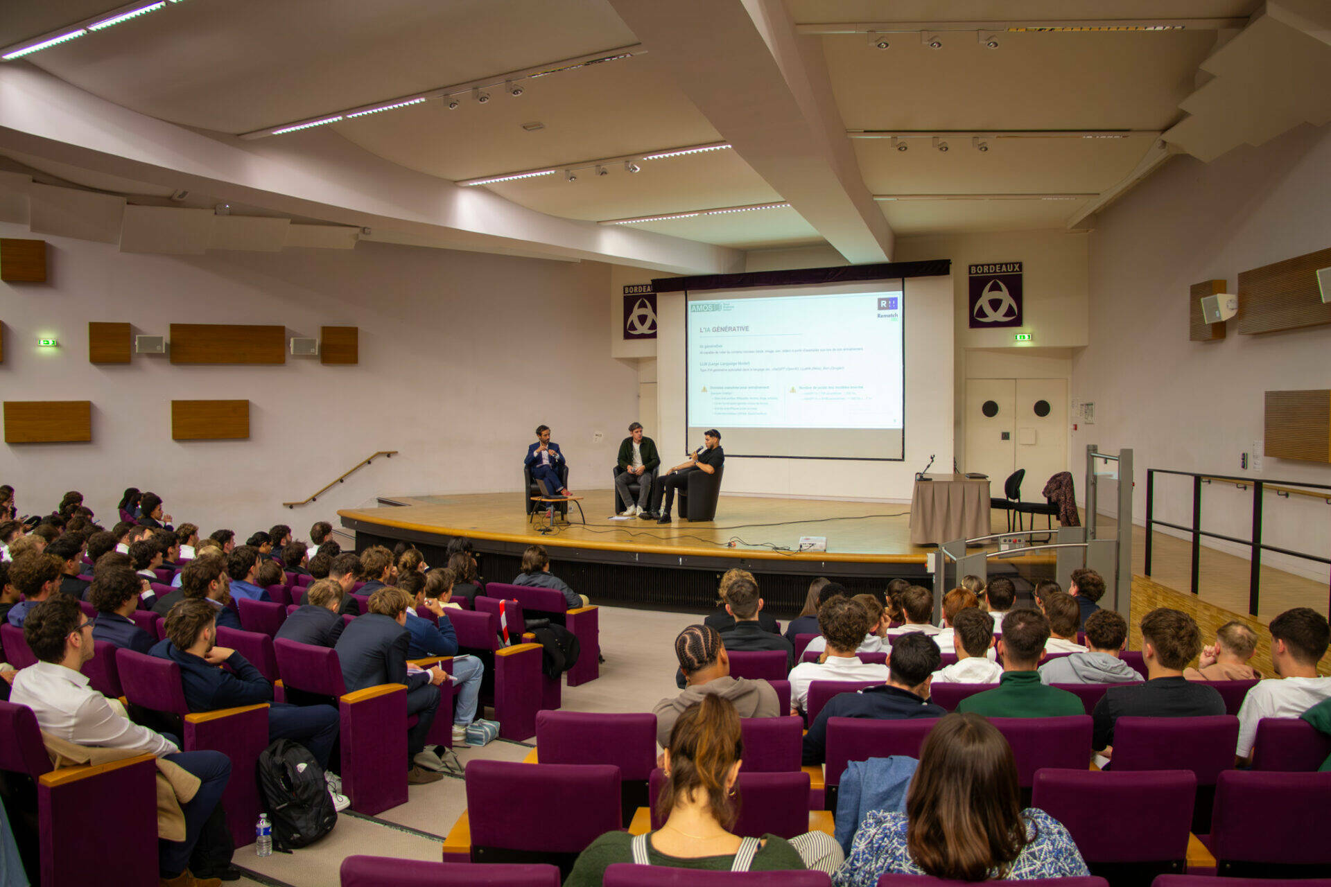 Les étudiant·es d’AMOS Bordeaux ont eu le privilège d’assister à une Masterclass dédiée au thème « L’Intelligence Artificielle et le sport ». Organisé dans l’emblématique Salle Athénée Municipale de Bordeaux, ce rendez-vous a marqué la rentrée académique par un moment d’échanges et de réflexion au cœur des enjeux technologiques actuels.